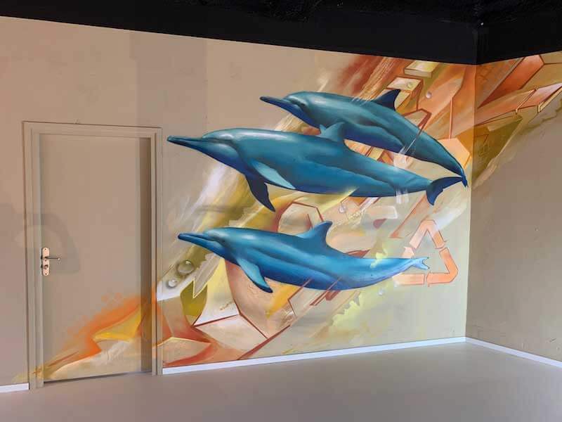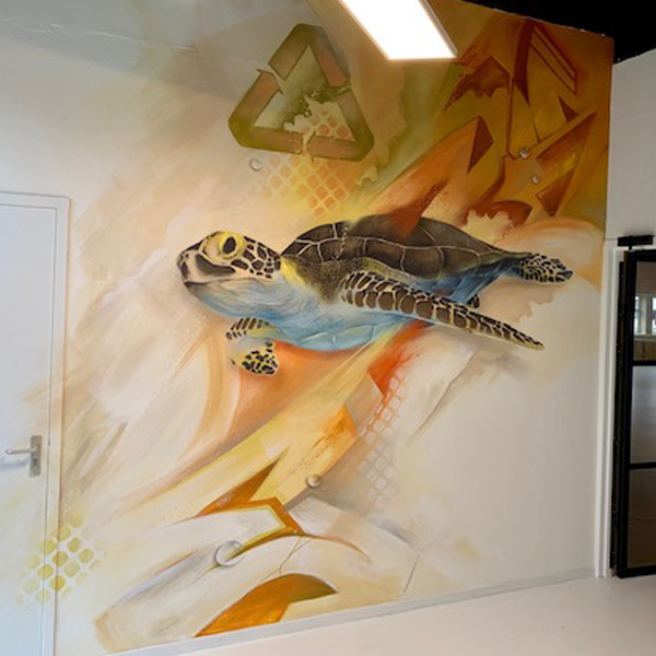 Tim heeft een geweldige muurschildering gemaakt in onze kantine, de medewerkers pauzeren nu in een ruimte met een fantastische sfeer