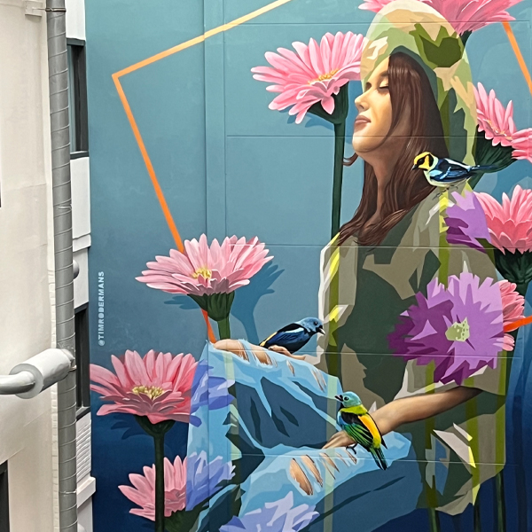 Tim heeft een kunstwerk op een grote buitengevel van ons gemaakt. Hij heeft op een mooie manier draagvlak gecreëerd in de buurt en een prachtig kunstwerk afgeleverd